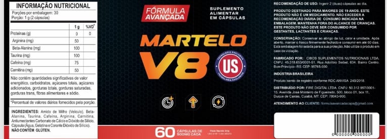 Produzido 100% com ingredientes naturais, a fórmula de Martelo V8 possui uma tecnologia que veio dos Estados Unidos com uma potência duas vezes maior para lhe oferecer os melhores resultados de forma eficiente e segura.